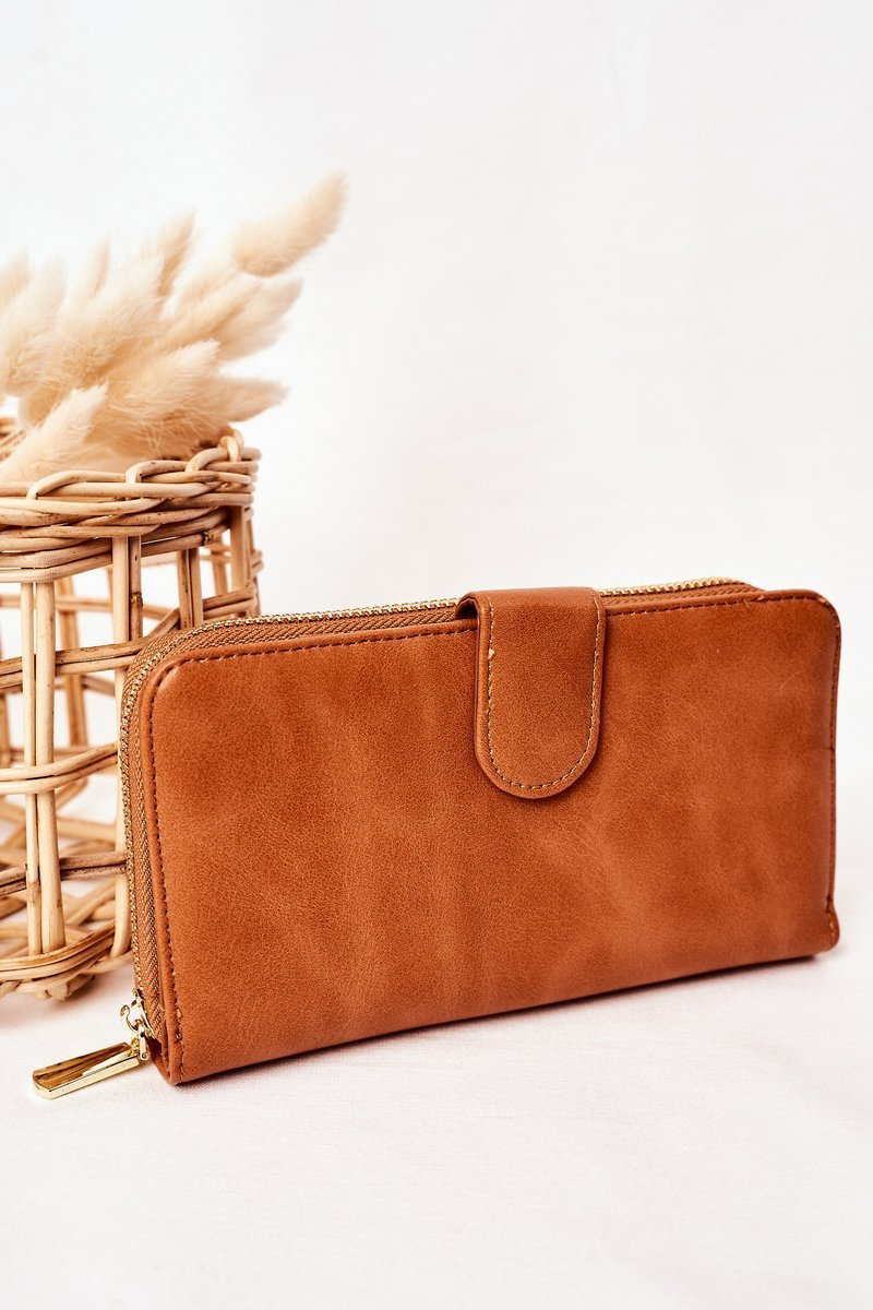 Duży Portfel Damski Z Kieszenią Brązowy