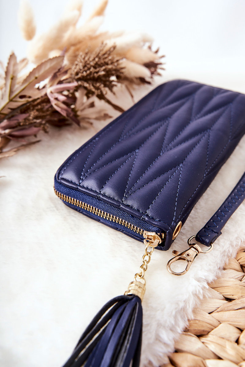 Duży Portfel Pikowany Na Suwak Z Paseczkiem Granatowy