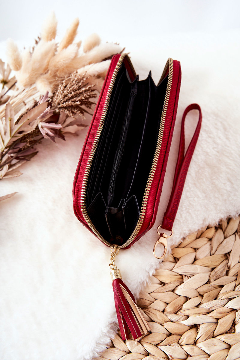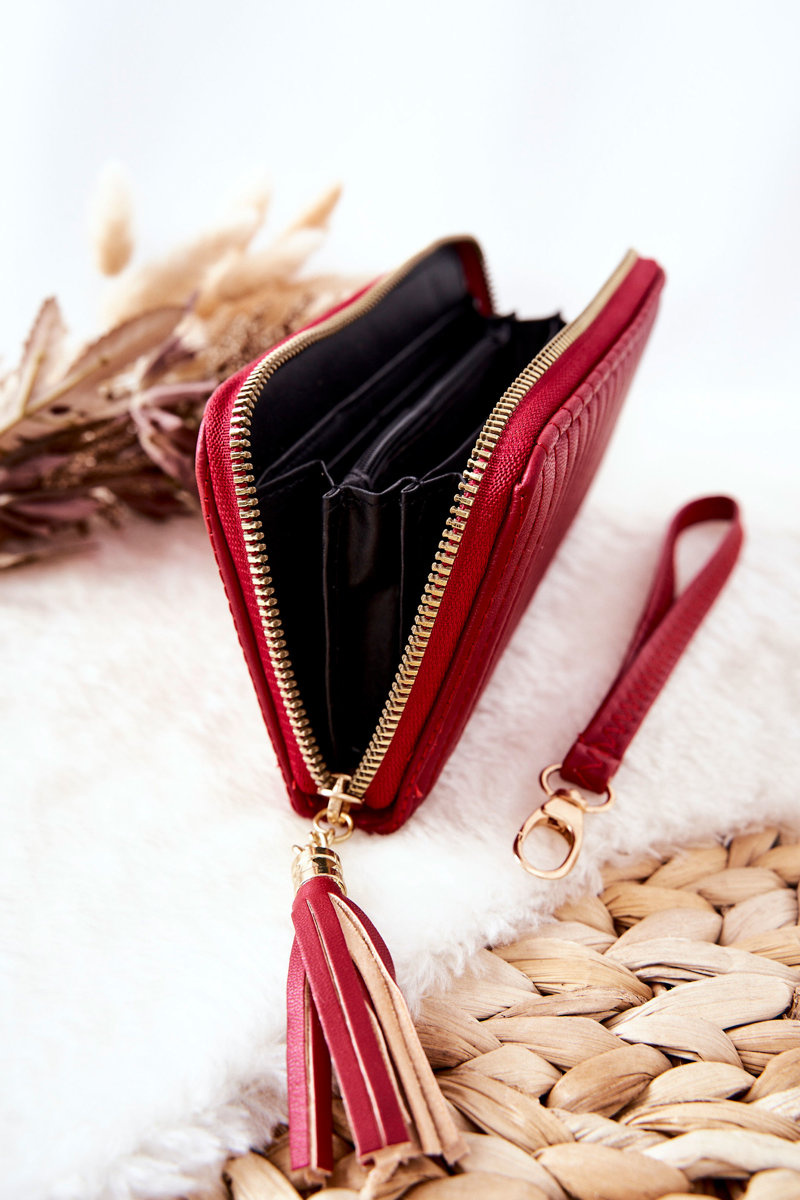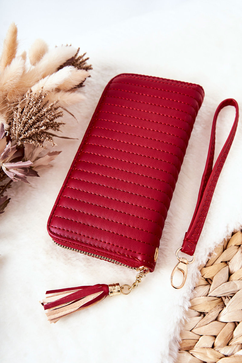 Duży Portfel Pikowany Z Paseczkiem Czerwony