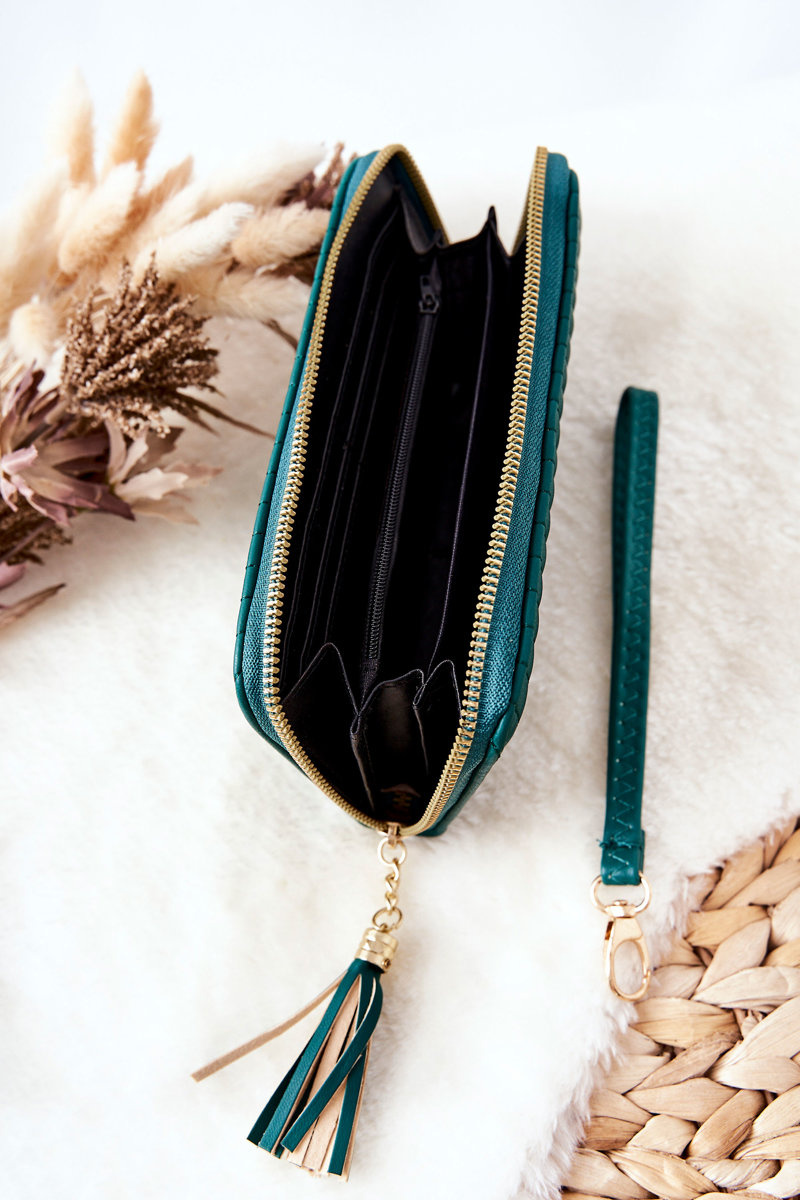 Duży Portfel Pikowany Z Paseczkiem Zielony