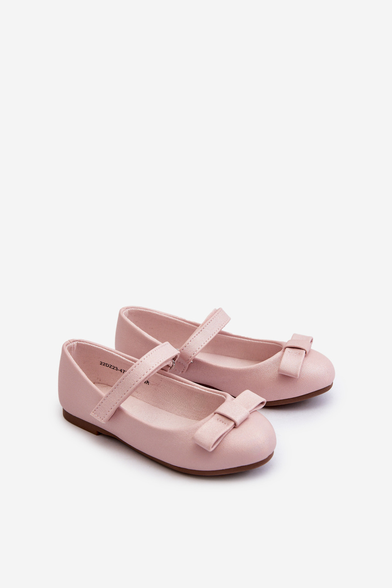 Dziecięce Balerinki Błyszczące Na Rzep Z Kokardką Różowe Fiorelle