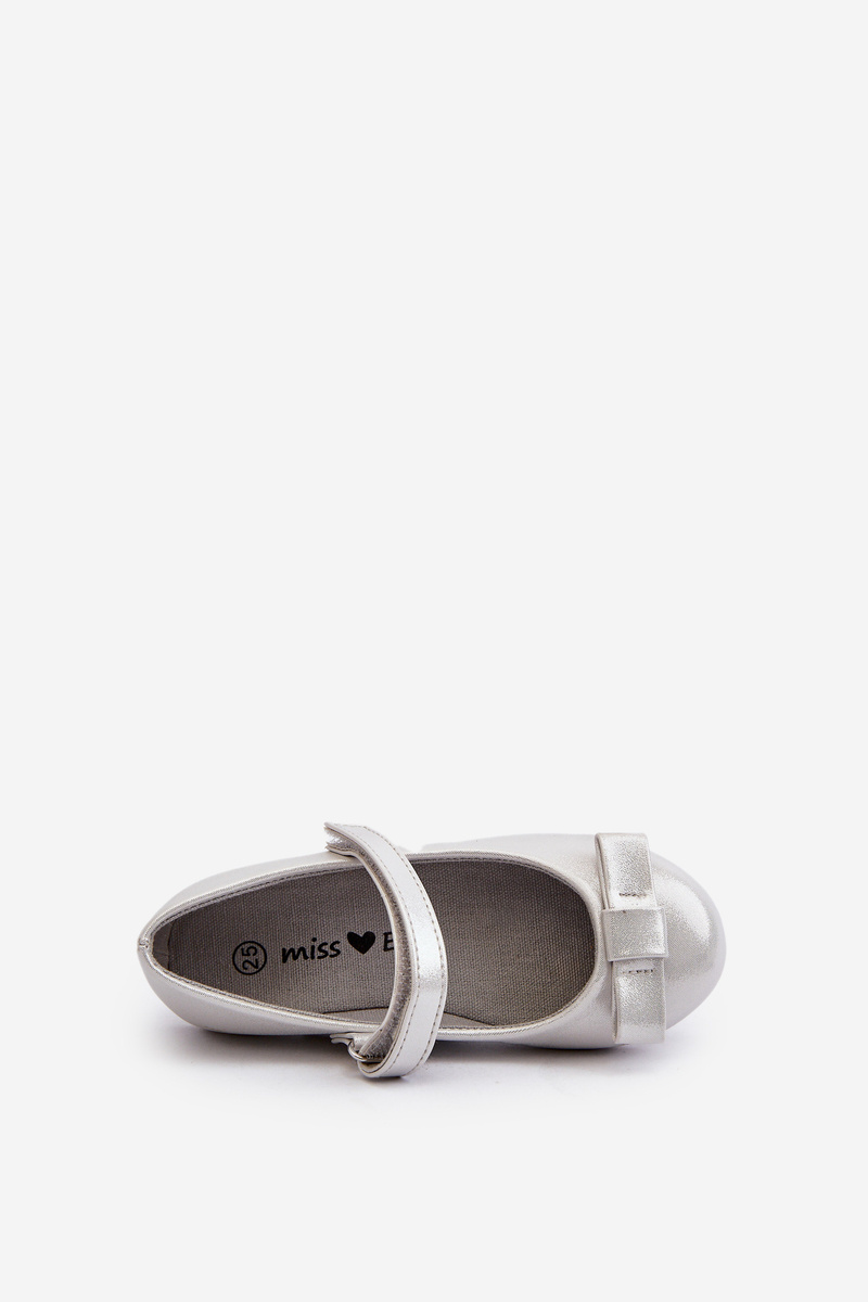 Dziecięce Balerinki Błyszczące Na Rzep Z Kokardką Srebrne Fiorelle