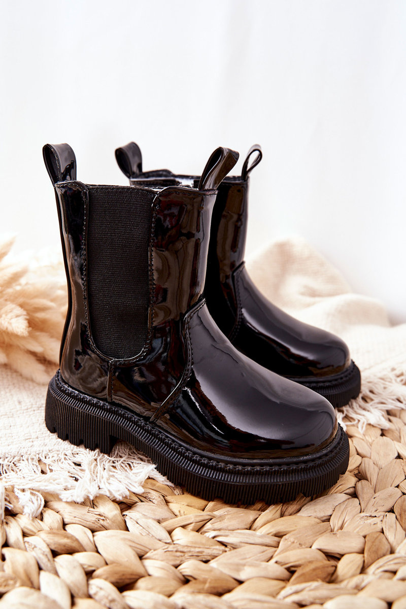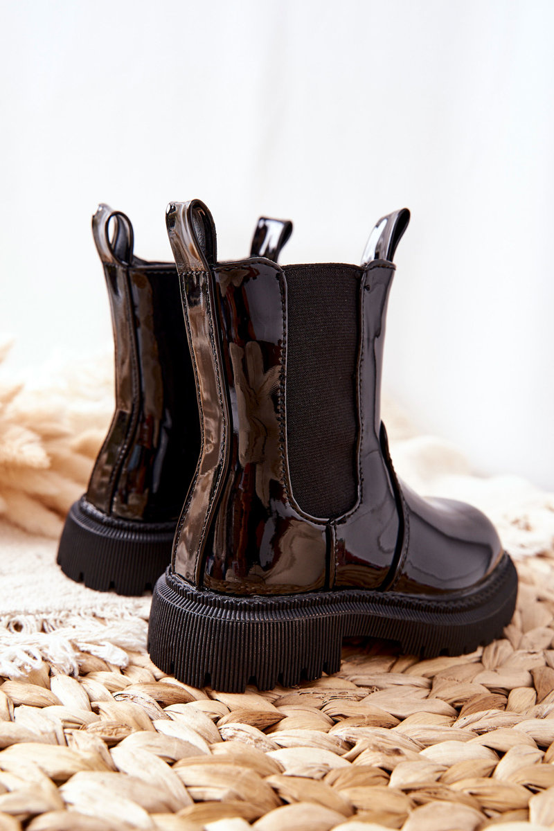 Dziecięce Botki Ocieplane Lakierowane Czarne Aletris