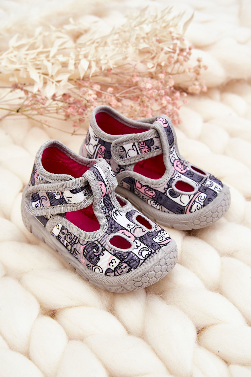 Dziecięce Buty Papcie Kotki Szare Befado 630P001