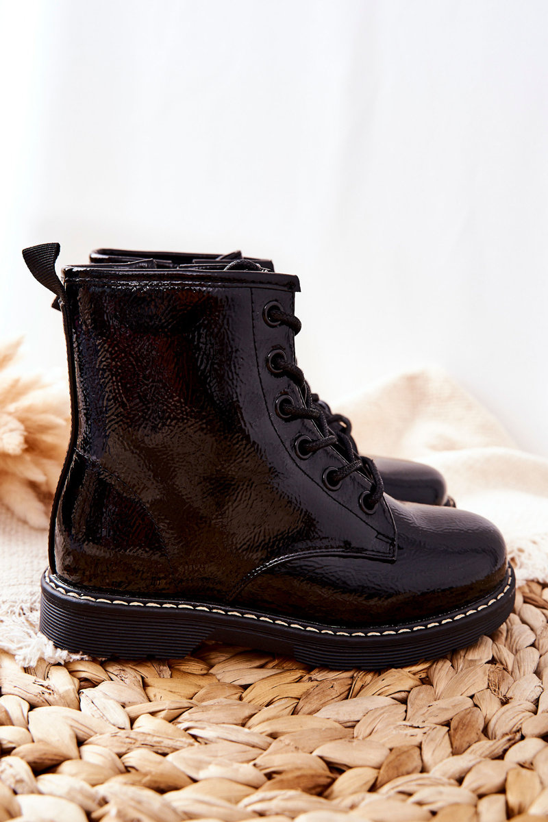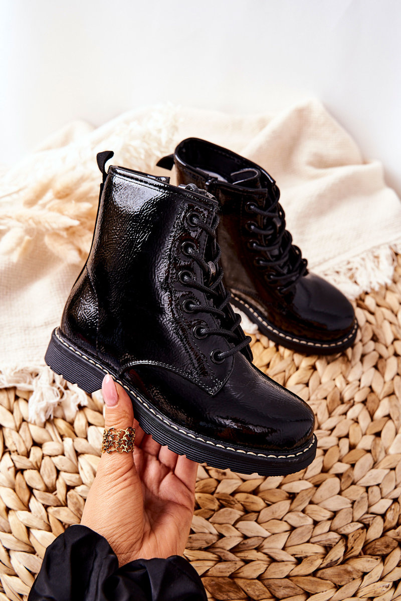 Dziecięce Ocieplane Botki Lakierowane Czarne Gessa