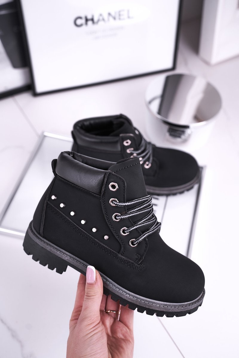 Dziecięce Ocieplane Botki z Ćwiekami Czarne Gonzo