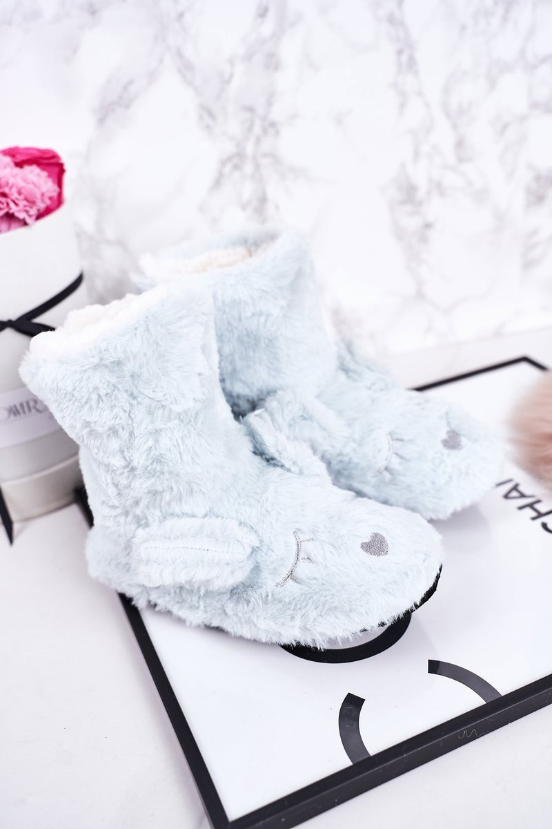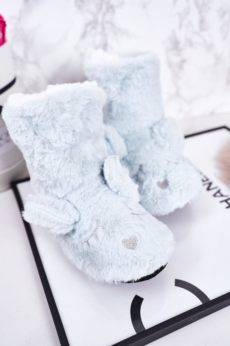 Dziecięce Papcie Ocieplane Kożuszkiem Niebieskie Sleepyhead