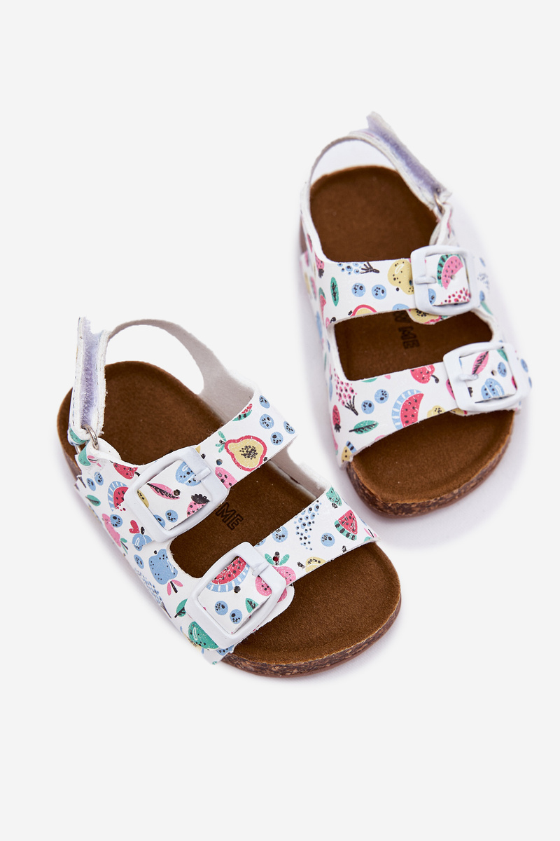 Dziecięce Sandałki Korkowa Podeszwa Klamry Owoce Białe Thessa