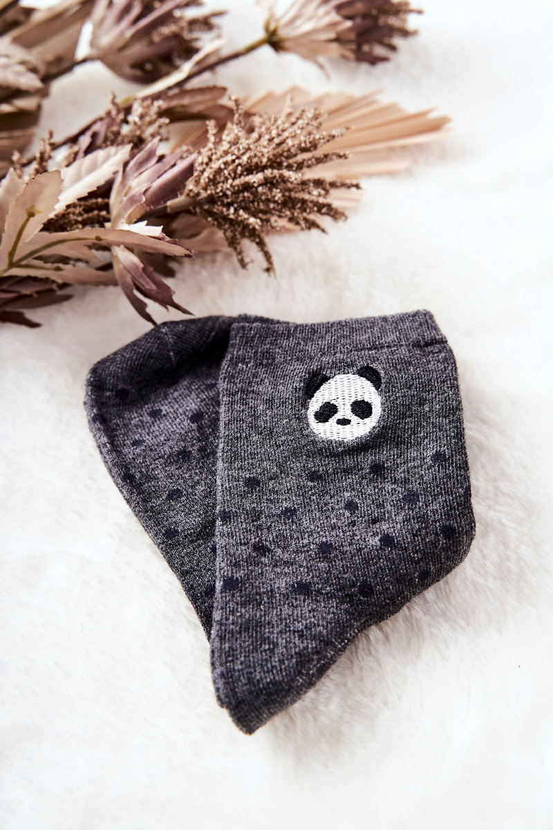 Śliczne dziecięce skarpetki posiadają uroczy haft pandy. Na całości posiadają kropki. Wykonane głównie z bardzo dobrej gatunkowo bawełny. Posiadają delikatny ściągacz. Dostępne w wielu rozmiarach i kolorach.