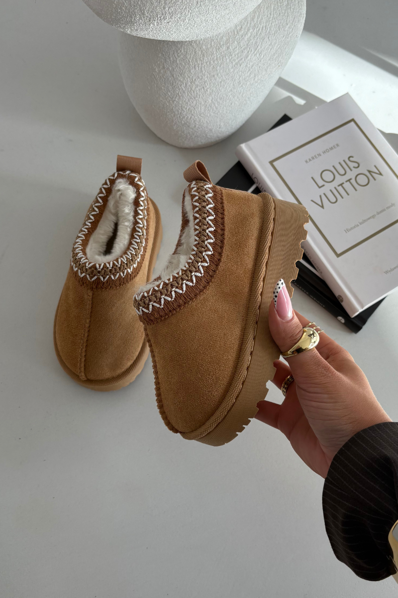 Dziecięce Śniegowce Haft Platforma Camel Prina