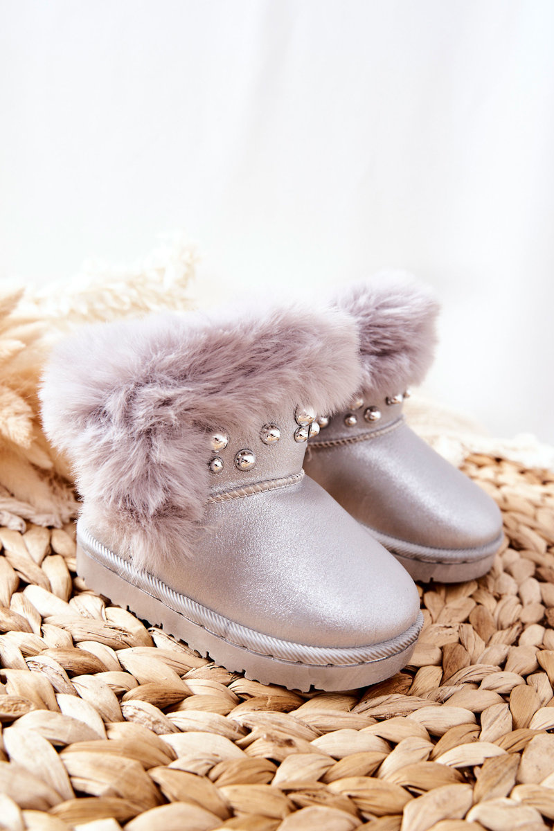 Dziecięce Śniegowce Ocieplane Futerkiem Srebrne Bonni