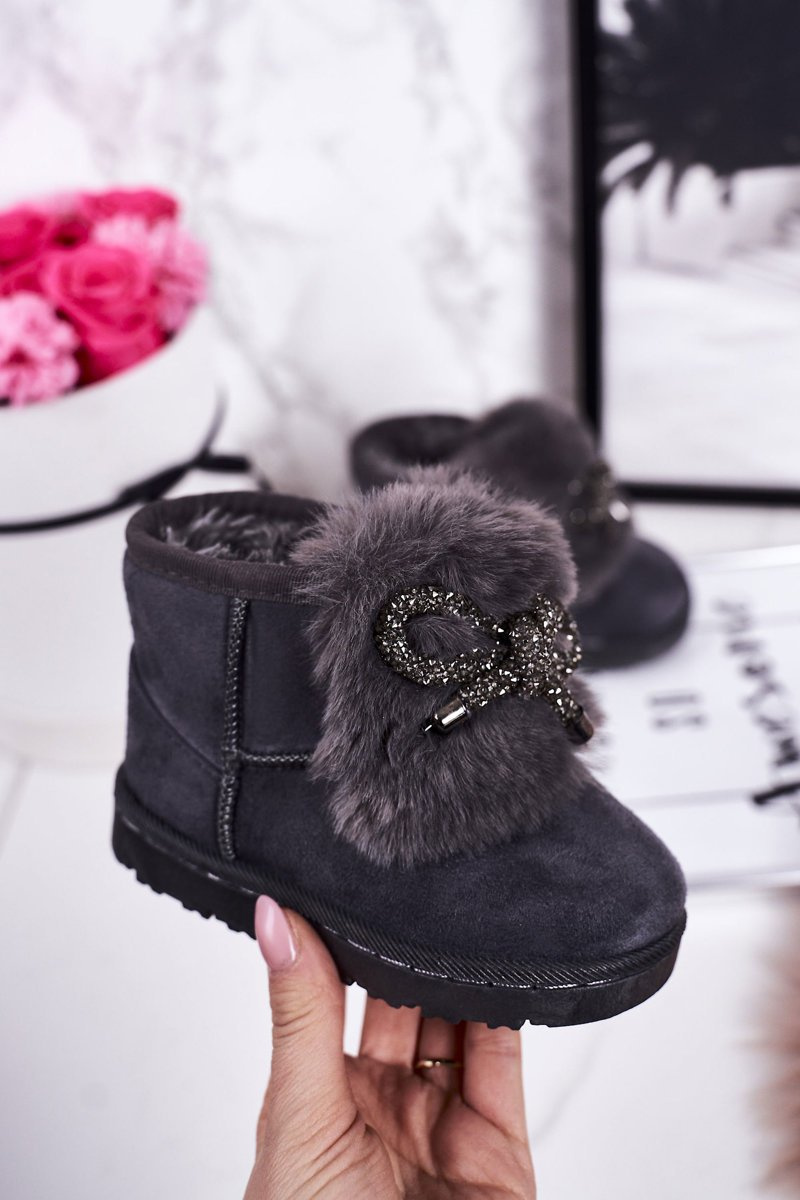 Opinie o Dziecięce Śniegowce Ocieplane Futerkiem Zamszowe Szare Amelia