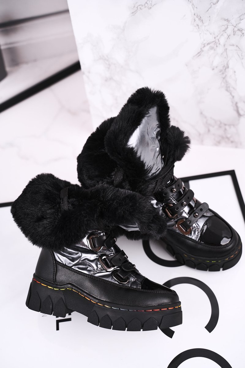 Dziecięce Śniegowce Ocieplone Futerkiem Czarno Szare Turismo