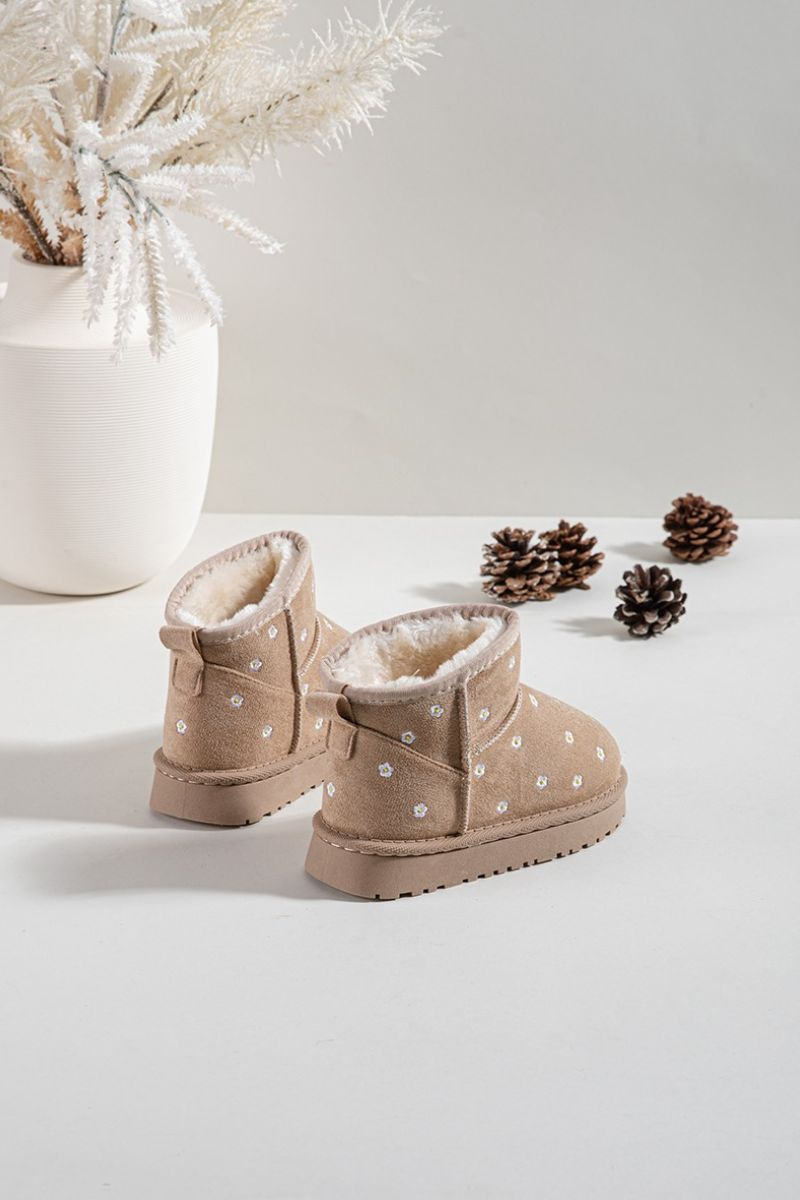 Dziecięce Śniegowce Z Kwiatuszkami Beżowe Gracina