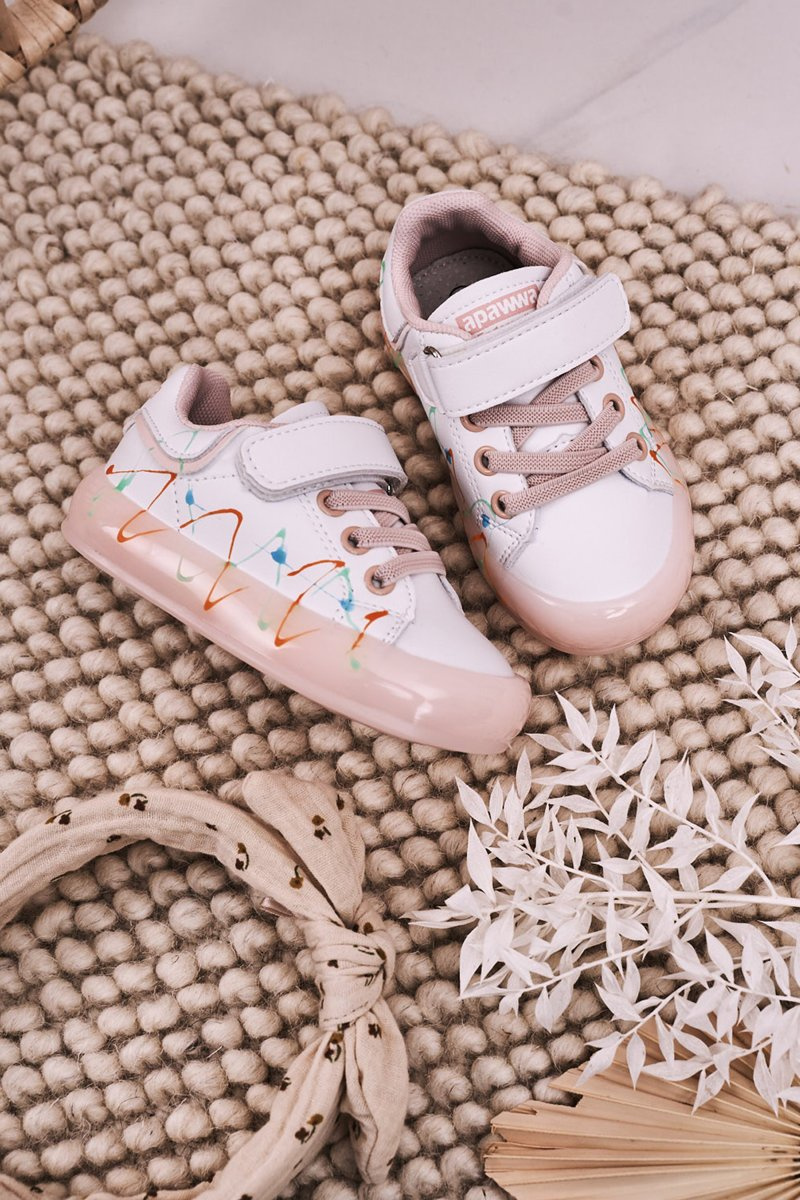 Dziecięce sportowe buty zapinane na rzep. Buty posiadają transparentną podeszwę z wbudowanymi światełkami LED. Buty wykonane są z wysokiej jakości eko skóry. Posiadają miękką, skórzaną wkładkę. Koniecznie sprawdź całą naszą kolekcję dziecięcych butów. Przy wyborze rozmiaru prosimy sugerować się tabelą rozmiarów.
