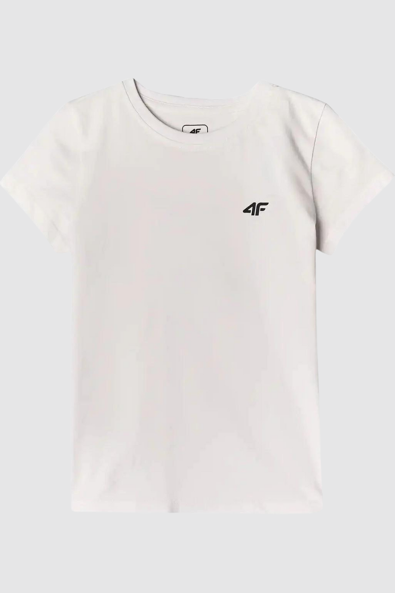 Dziewczęcy T-shirt Gładki Bawełniany Biały 4F 4FJWMM00TTSHF1658-10S