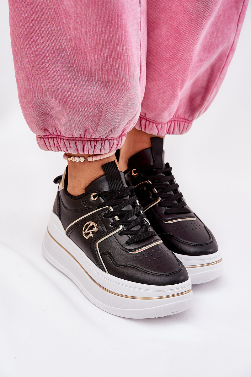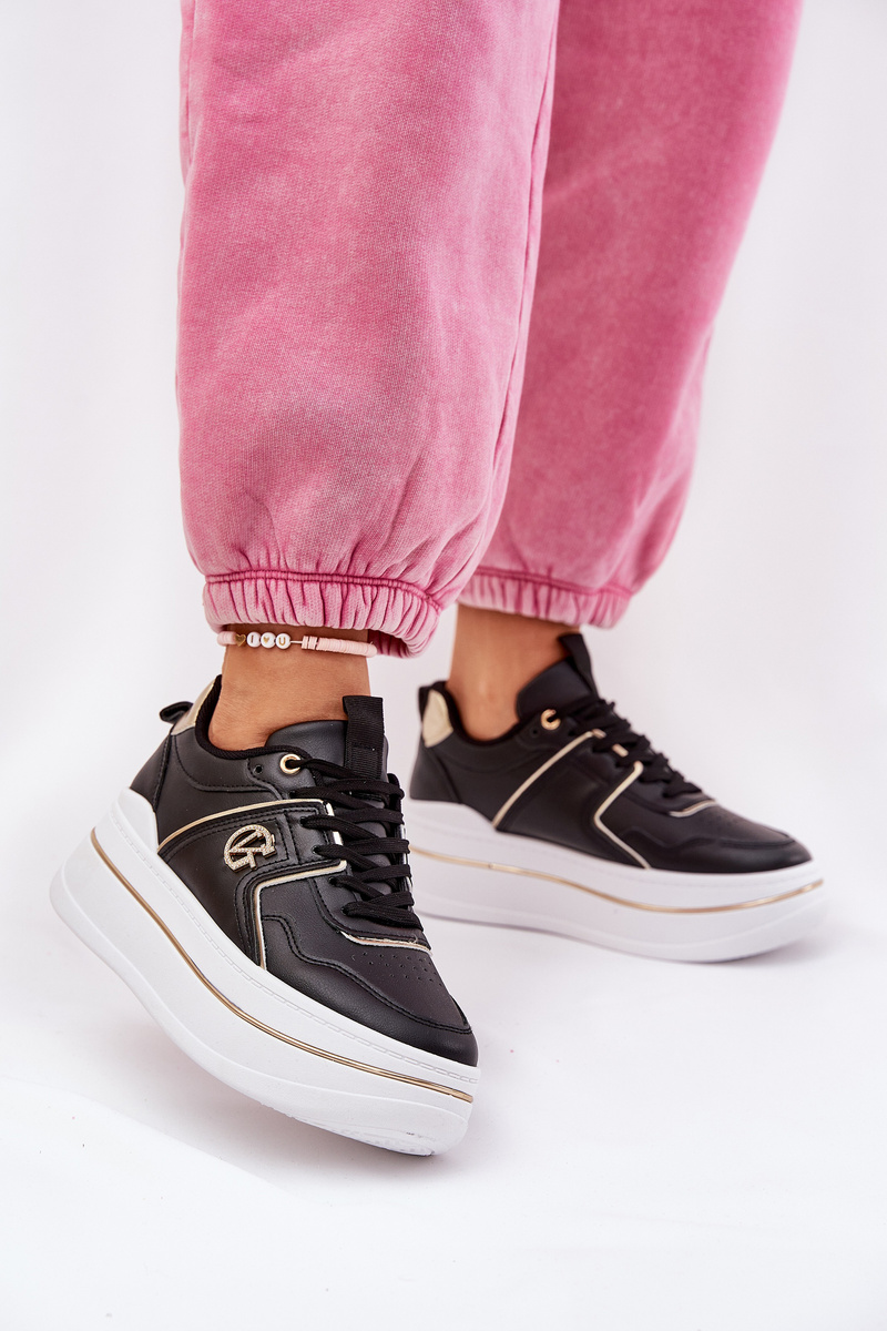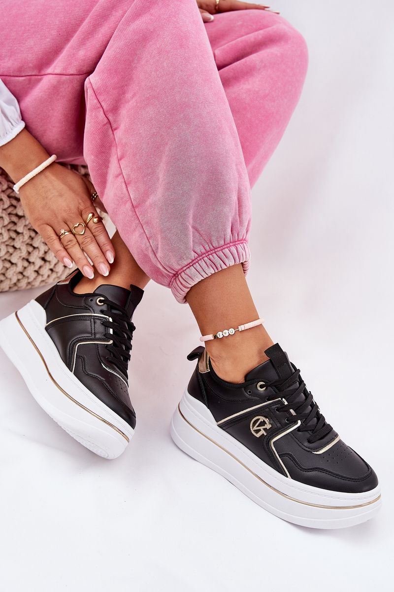 Eko Skórzane Damskie Buty Sportowe Na Platformie Czarne Caldeno