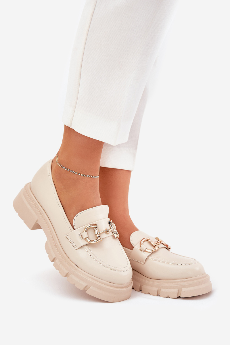 Opinie o Eko Skórzane Damskie Mokasyny Złoty Detal Beżowe Ravalissea
