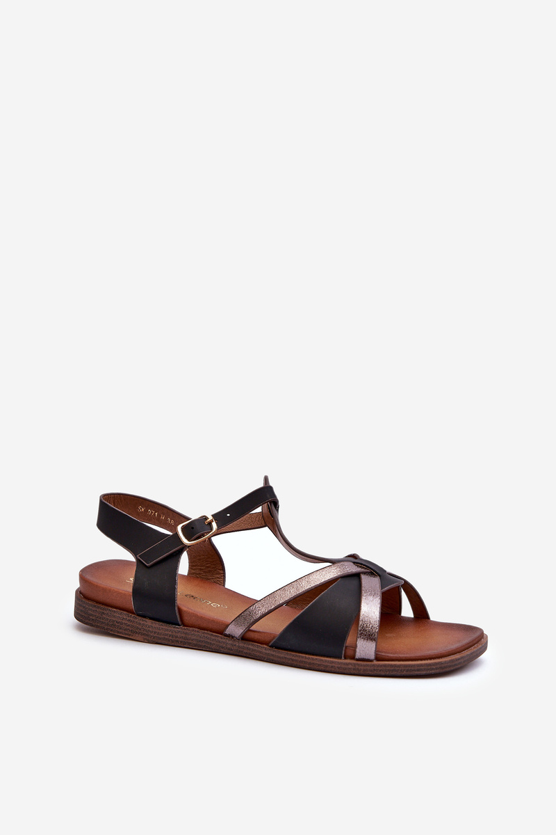 Eko Skórzane Damskie Sandały Płaskie Czarne Sergio Leone SK071H