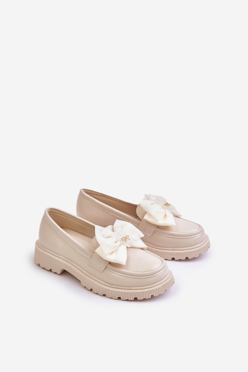 Eko Skórzane Mokasyny Dla Dziewczynki Z Kokardką Beżowe Avallesa