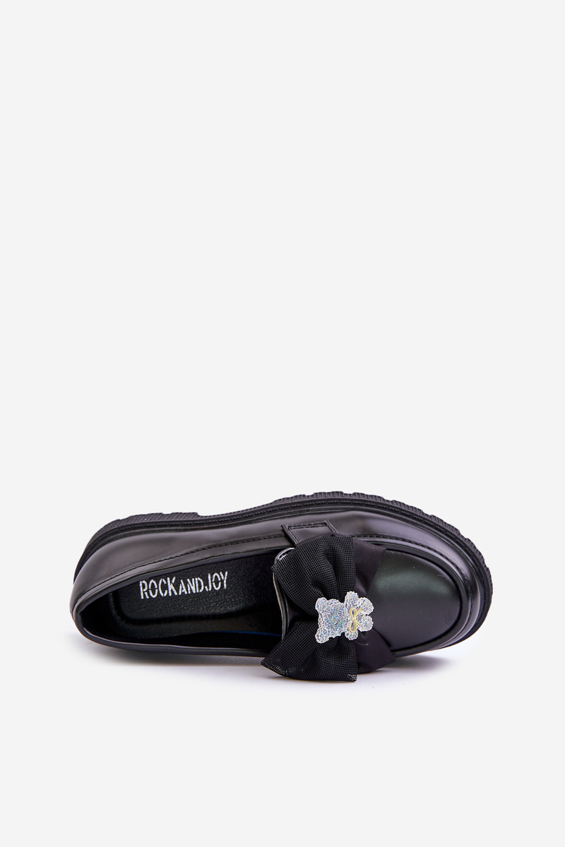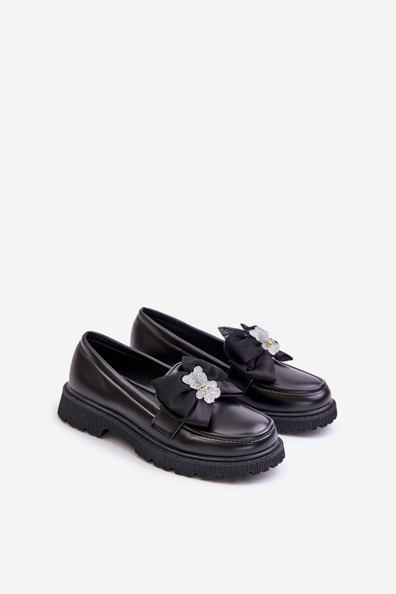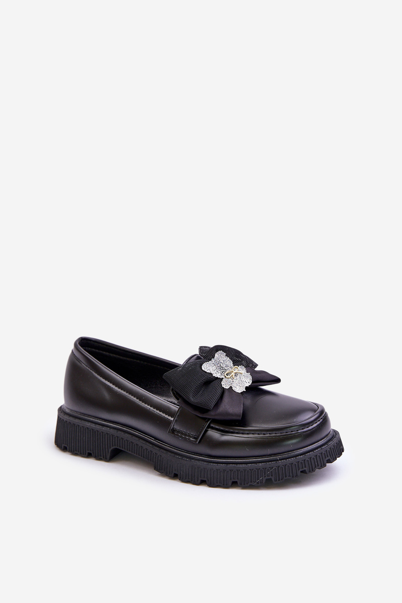 Eko Skórzane Mokasyny Dla Dziewczynki Z Kokardką Czarne Avallesa