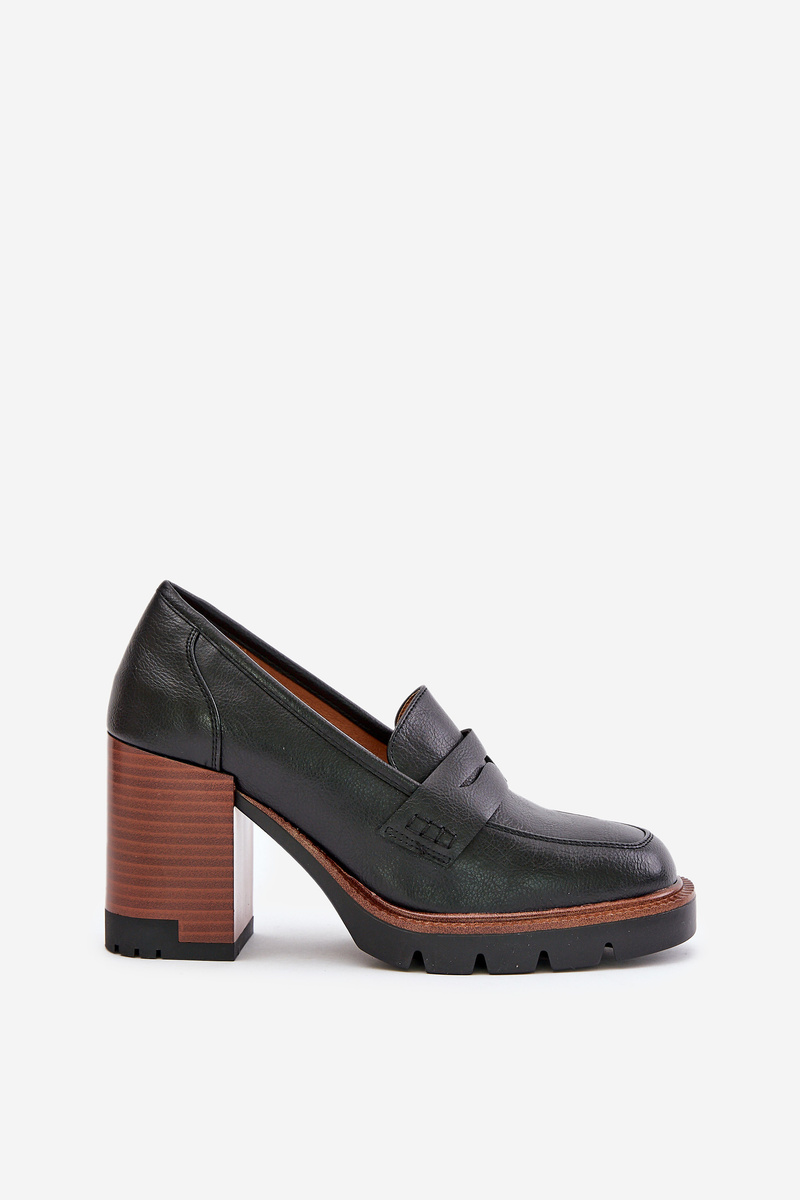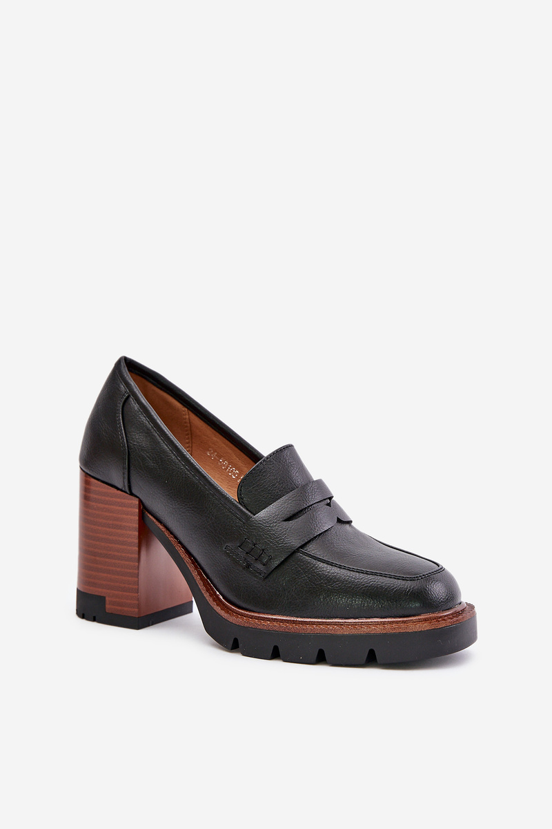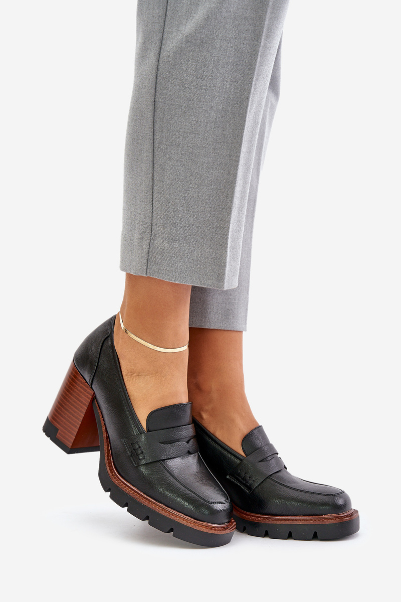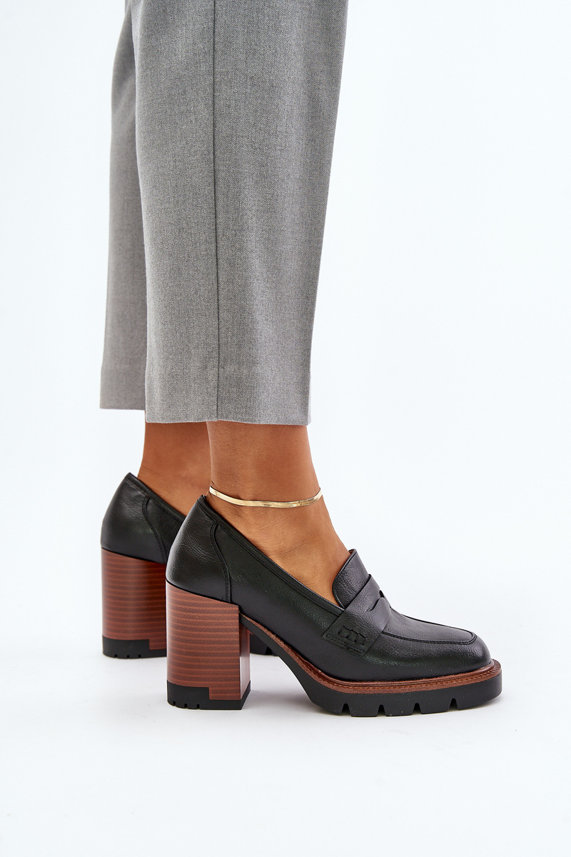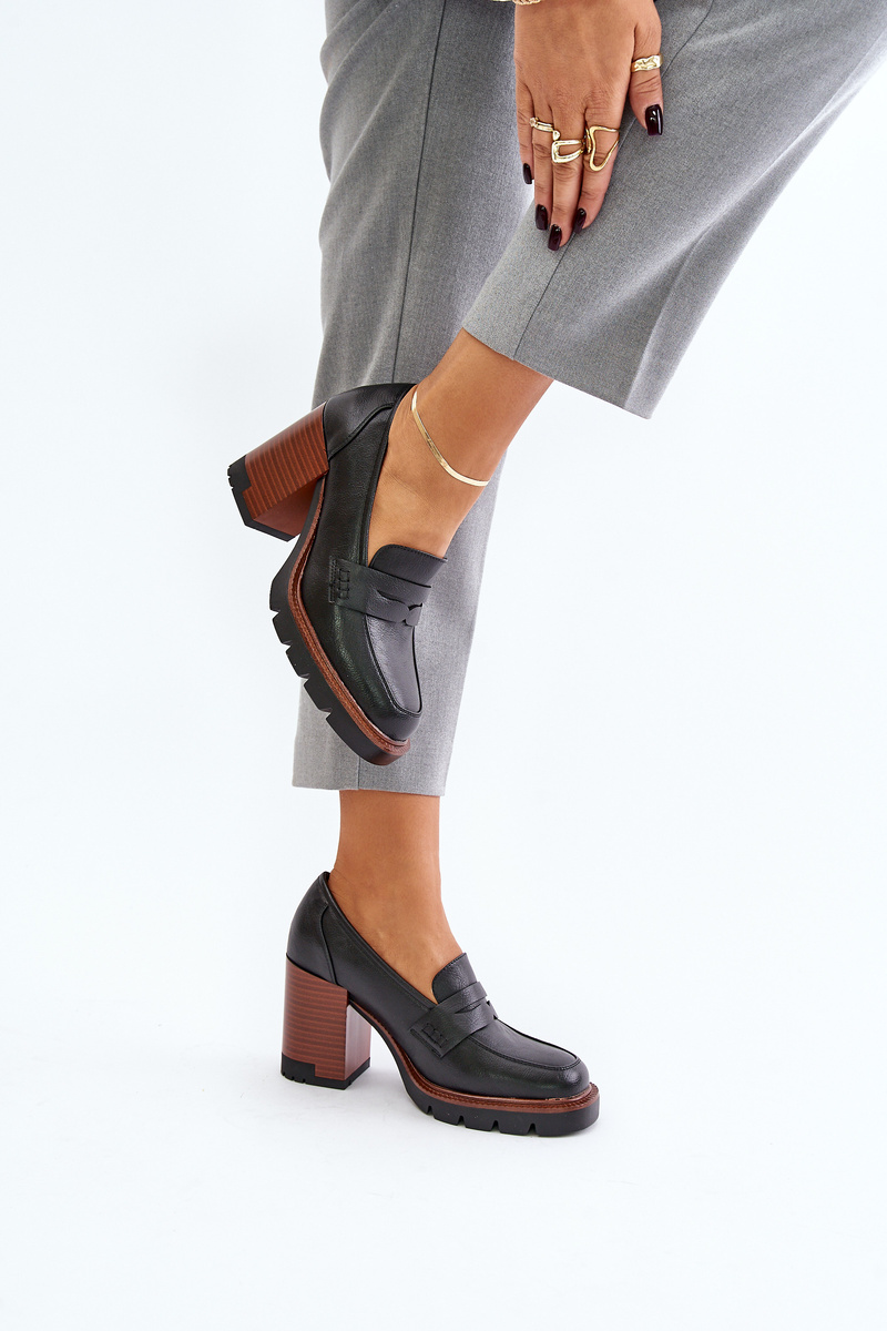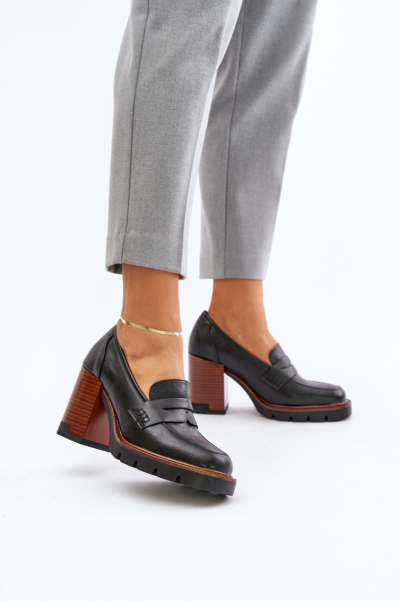 Eko Skórzane Półbuty Damskie Na Obcasie Słupku Vinceza 58105 Czarne