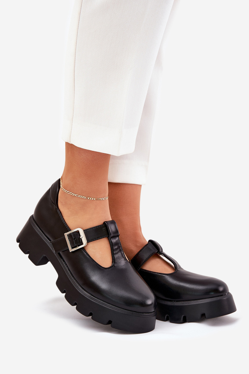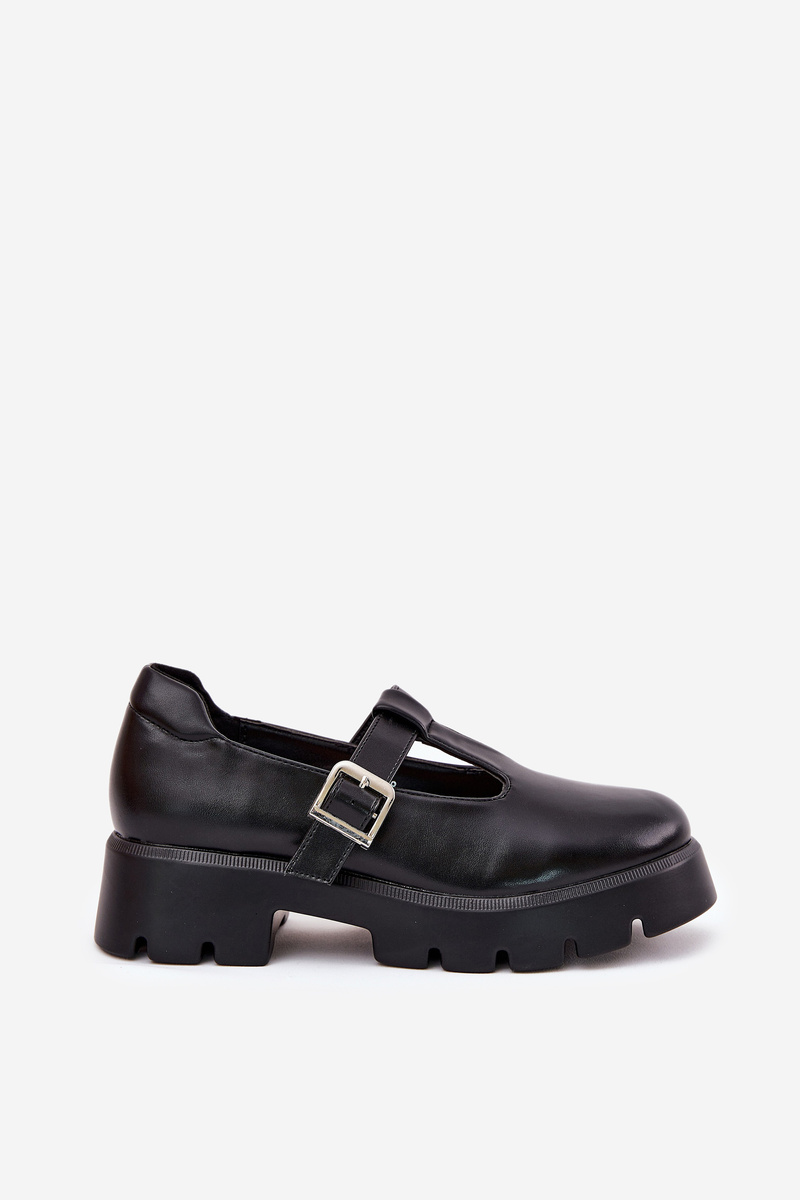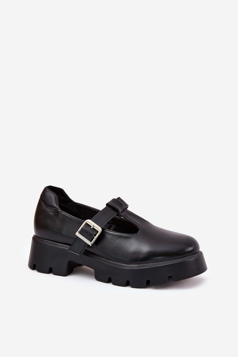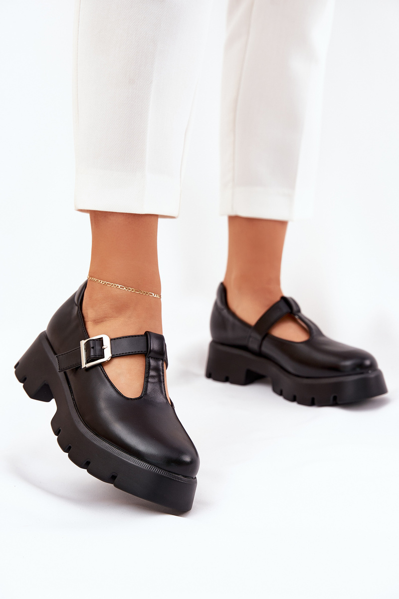 Eko Skórzane Półbuty Na Platformie I Płaskim Obcasie Z Klamrą Czarne Venda