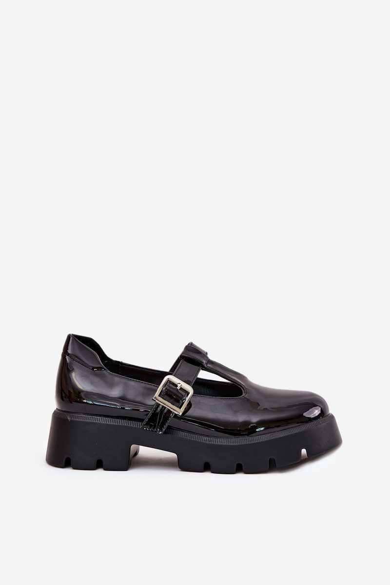 Eko Skórzane Półbuty Na Platformie I Płaskim Obcasie Z Klamrą Lakierowane Czarne Venda