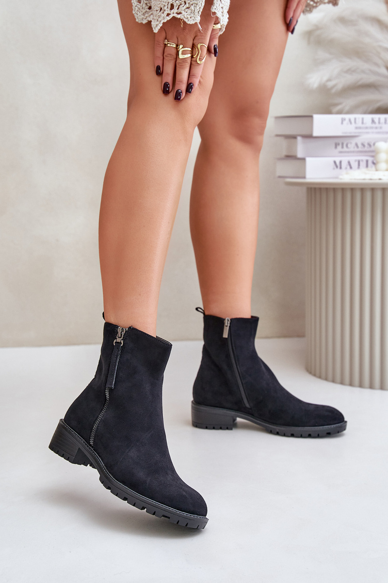 Eko Zamszowe Botki Damskie Na Płaskim Obcasie Czarne Innabelle