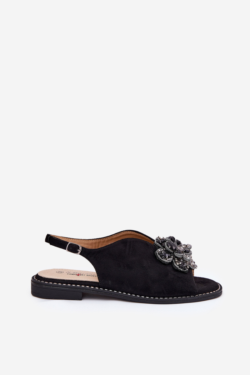Eko Zamszowe Sandały Płaskie Z Ozdobą Czarne S.Barski KV27-001
