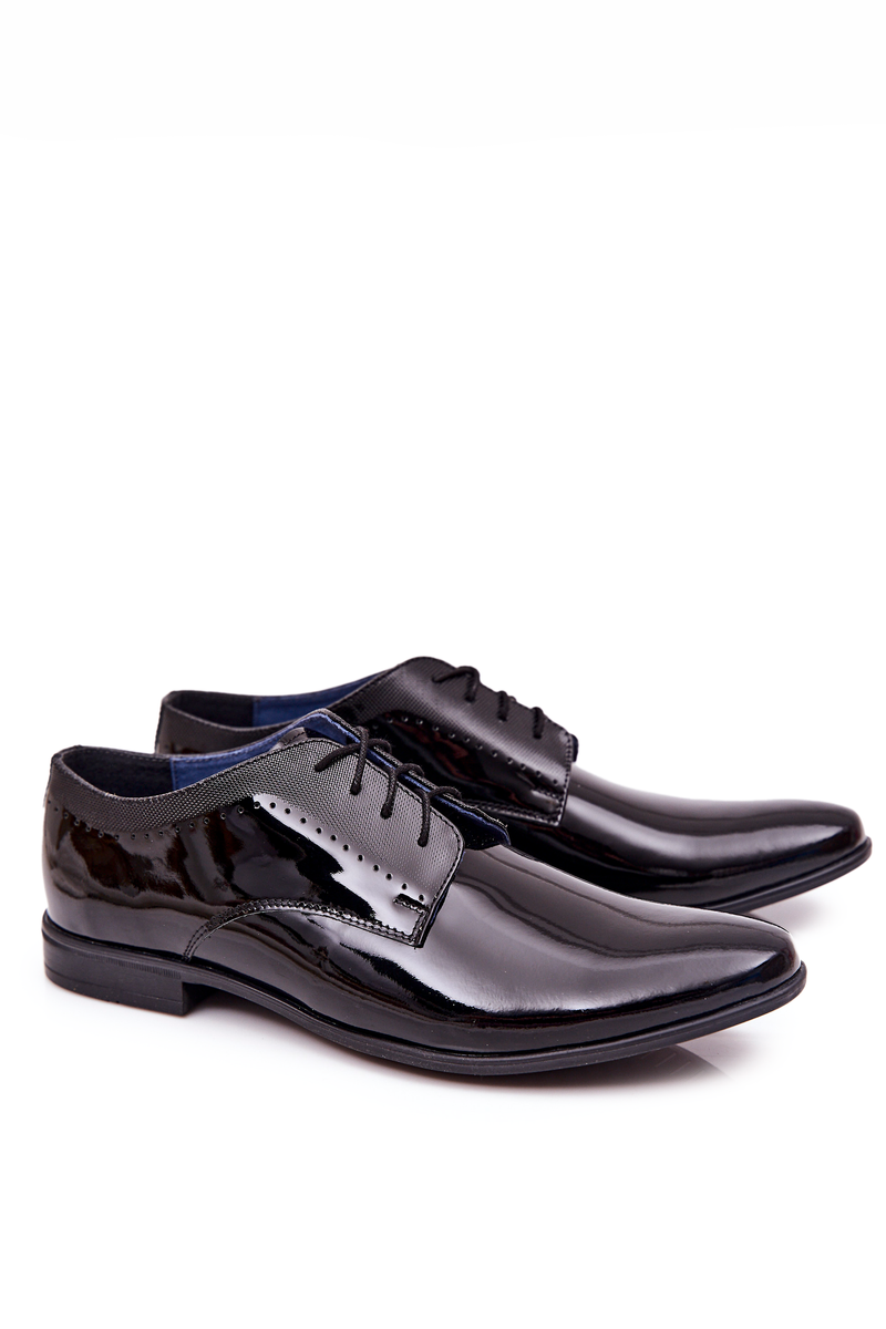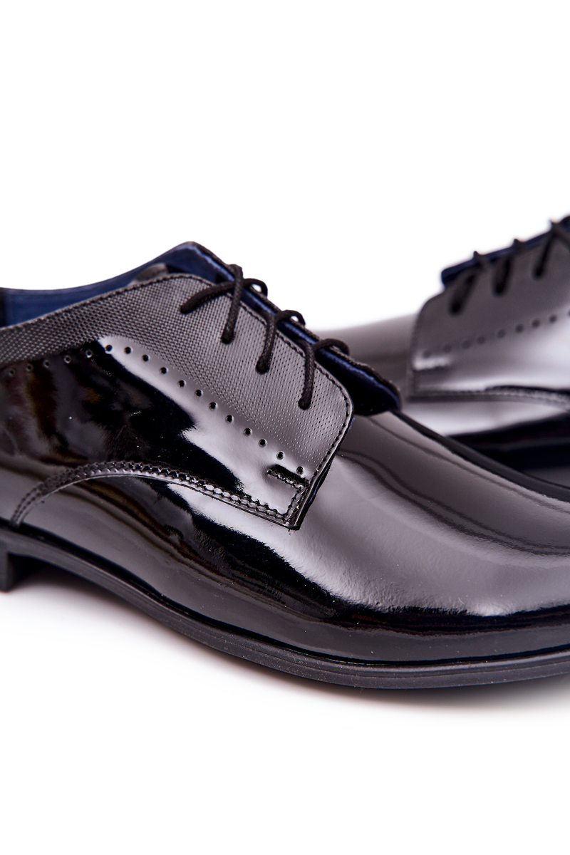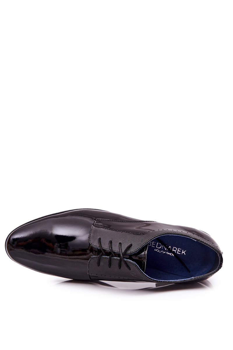 Eleganckie Lakierowane Skórzane Półbuty Bednarek 724 Czarne