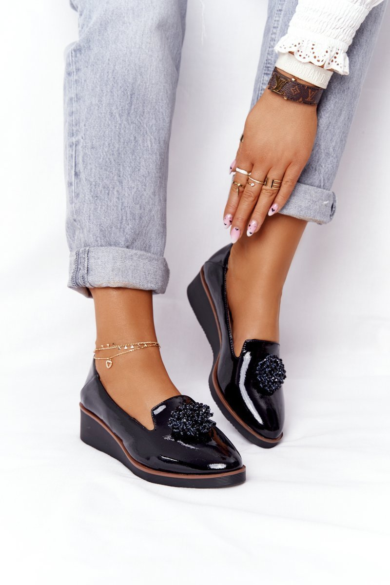 Eleganckie Półbuty Na Koturnie Vinceza 10580 Lakierowane Czarne