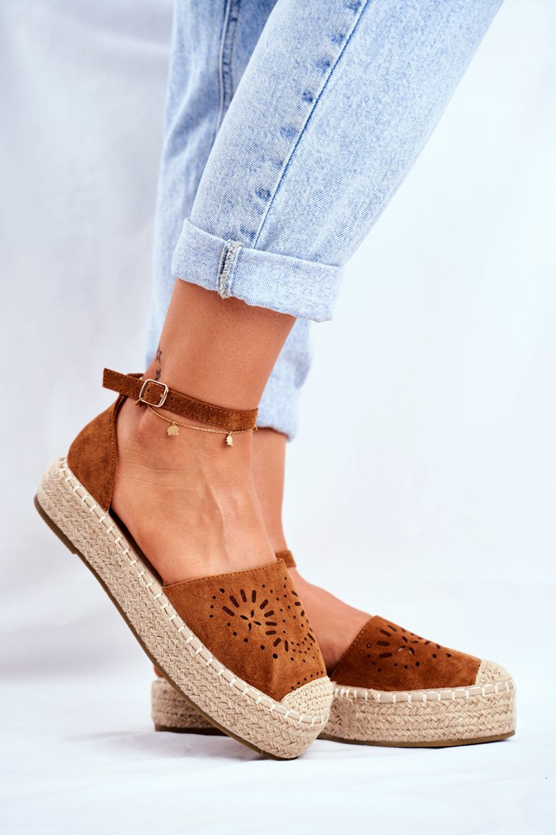 Espadryle Damskie Na Platformie Lniane Camel Palermo