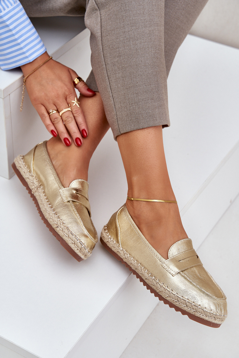 Espadryle Damskie Płaska Podeszwa Jutowa Plecionka Złote Shilova
