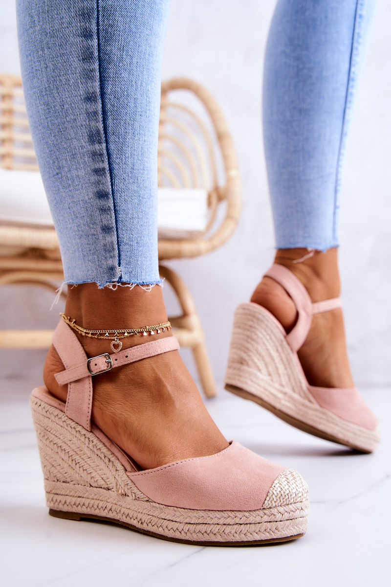 Espadryle Damskie Pleciona Platforma Różowe Canillo
