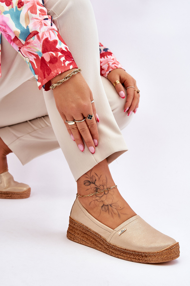 Espadryle Damskie Skóra Koturn Beżowo-Złote Lemar Hadlee