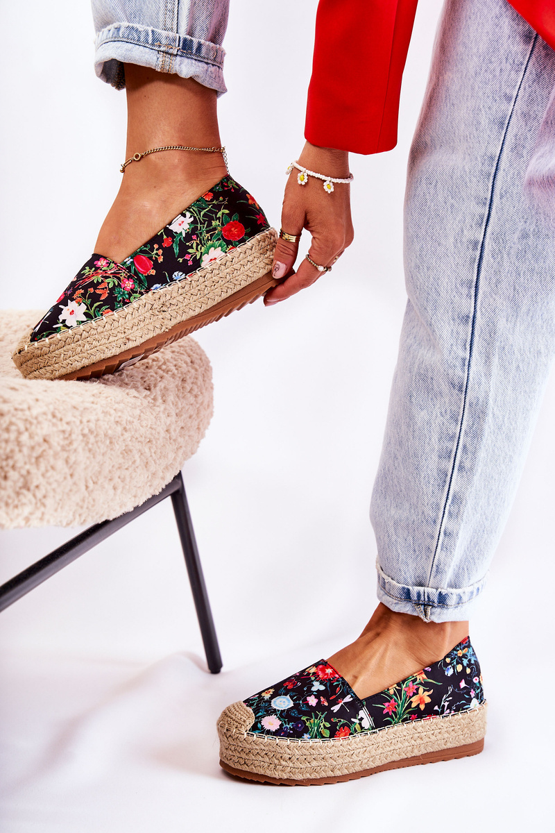 Espadryle Modne Wsuwane Kwiaty Czarne Morice