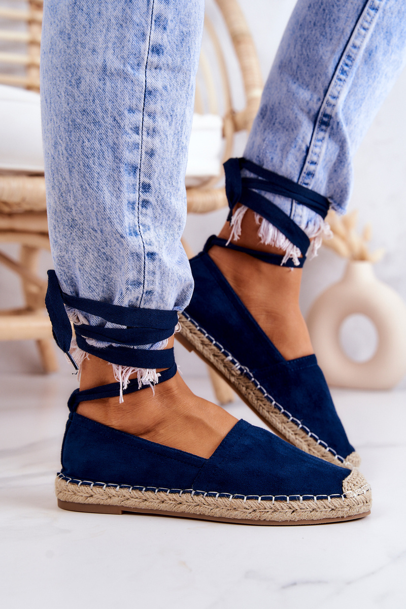 Espadryle Wiązane Na Płaskiej Podeszwie Granatowe Ismanne