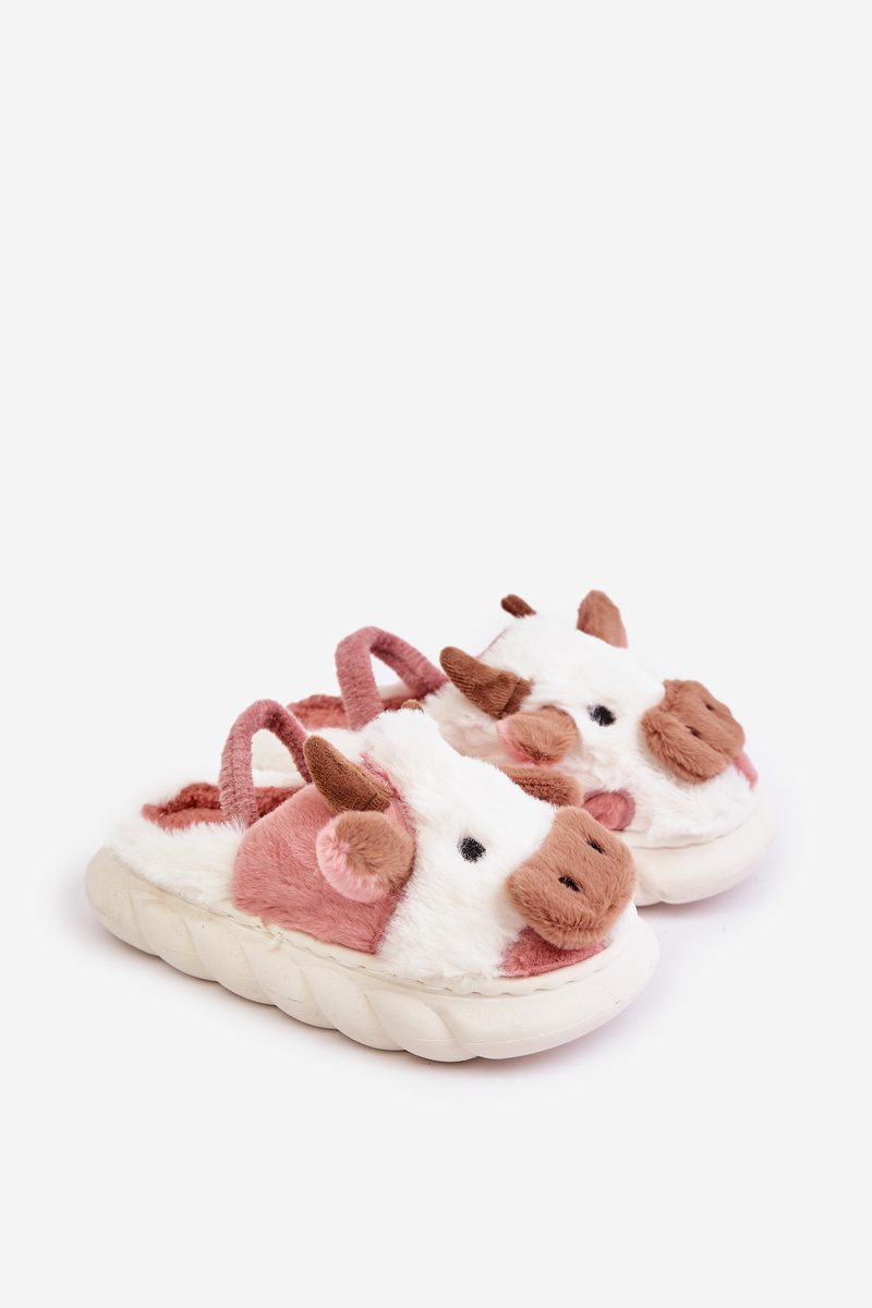 Futrzane Kapcie Z Motywem Krowy Dziecięce Różowe Tamorrin
