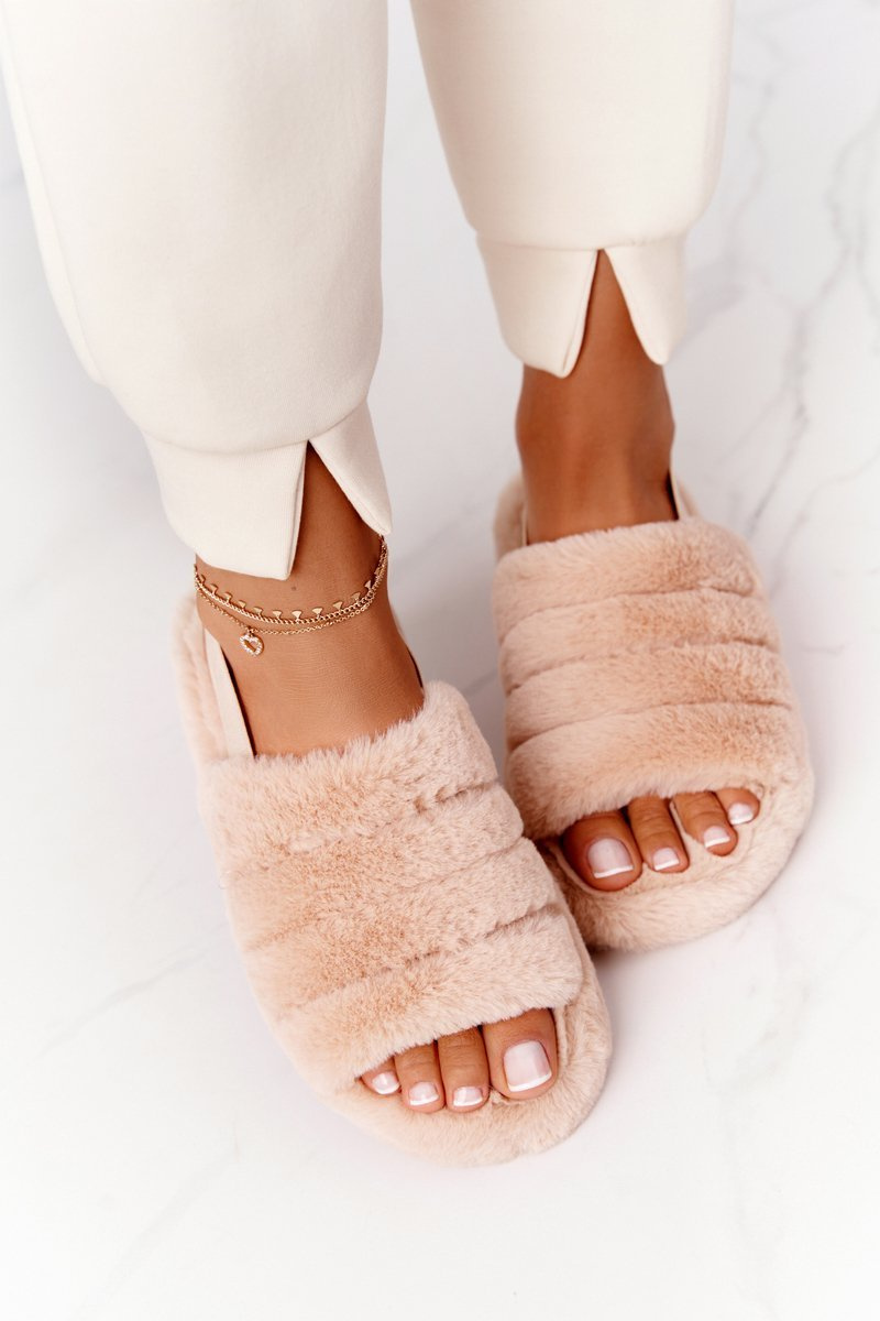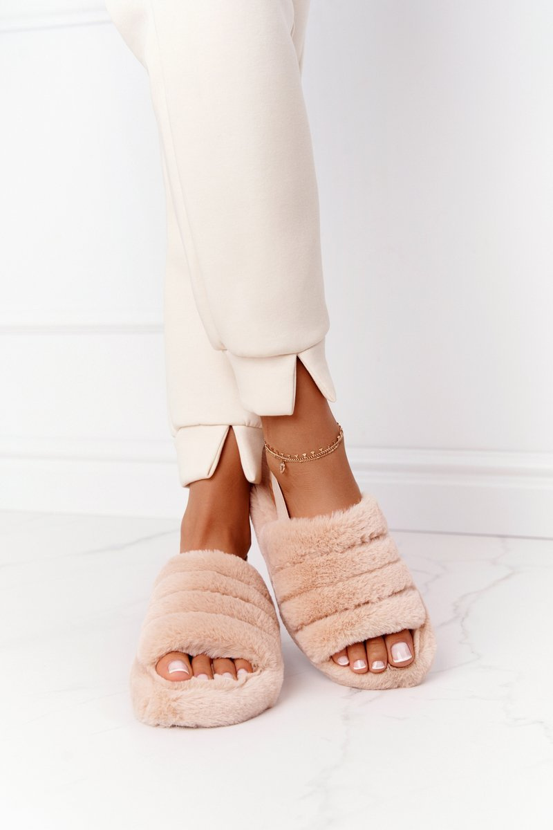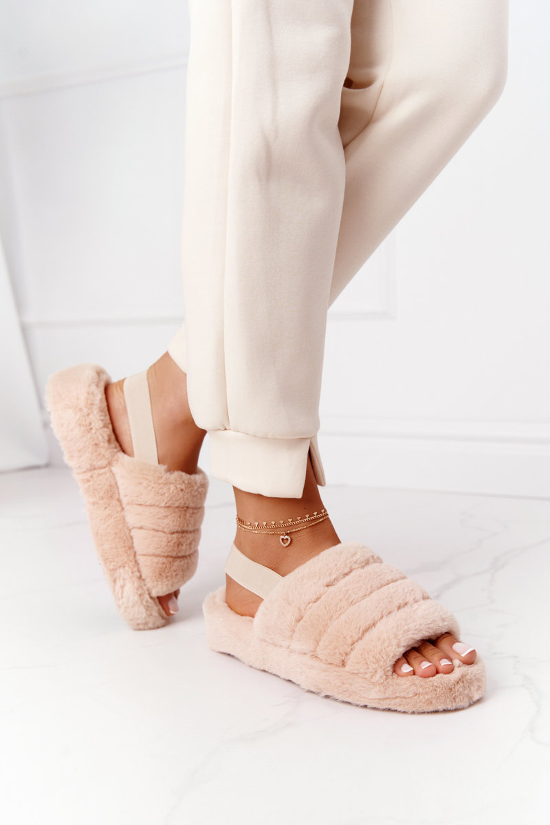 Futrzane Papcie Na Platformie Beżowe Snowflake