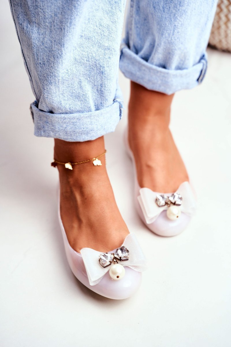 Gumowe Balerinki Białe Meliski Kokardy Perełka Millie