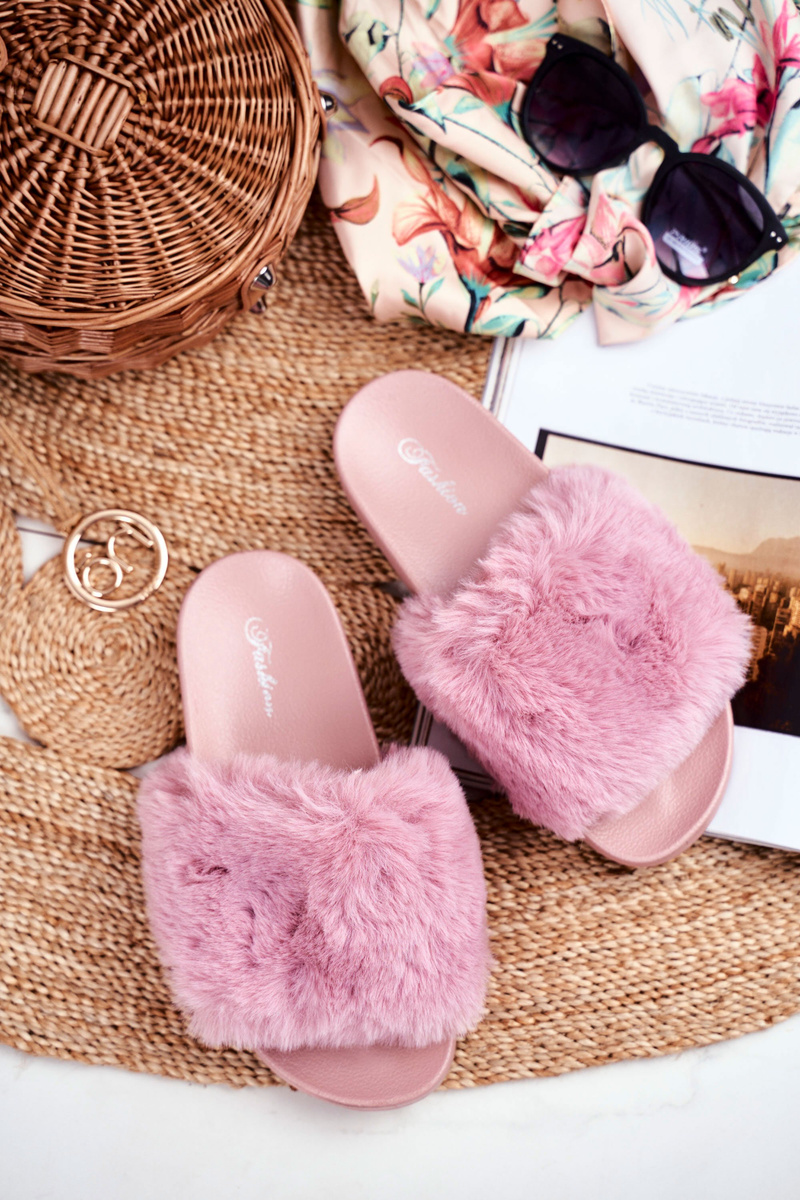 Gumowe Klapki Z Futerkiem Różowe Sensitive