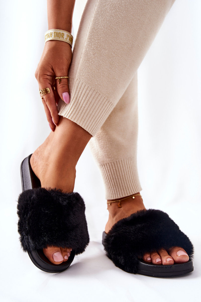 Gumowe Profilowane Klapki Z Futerkiem Czarne Emmie