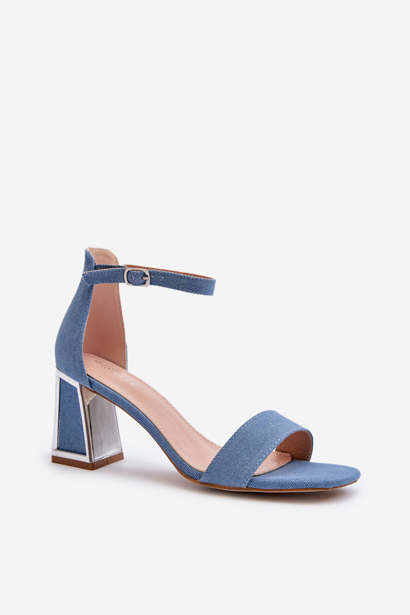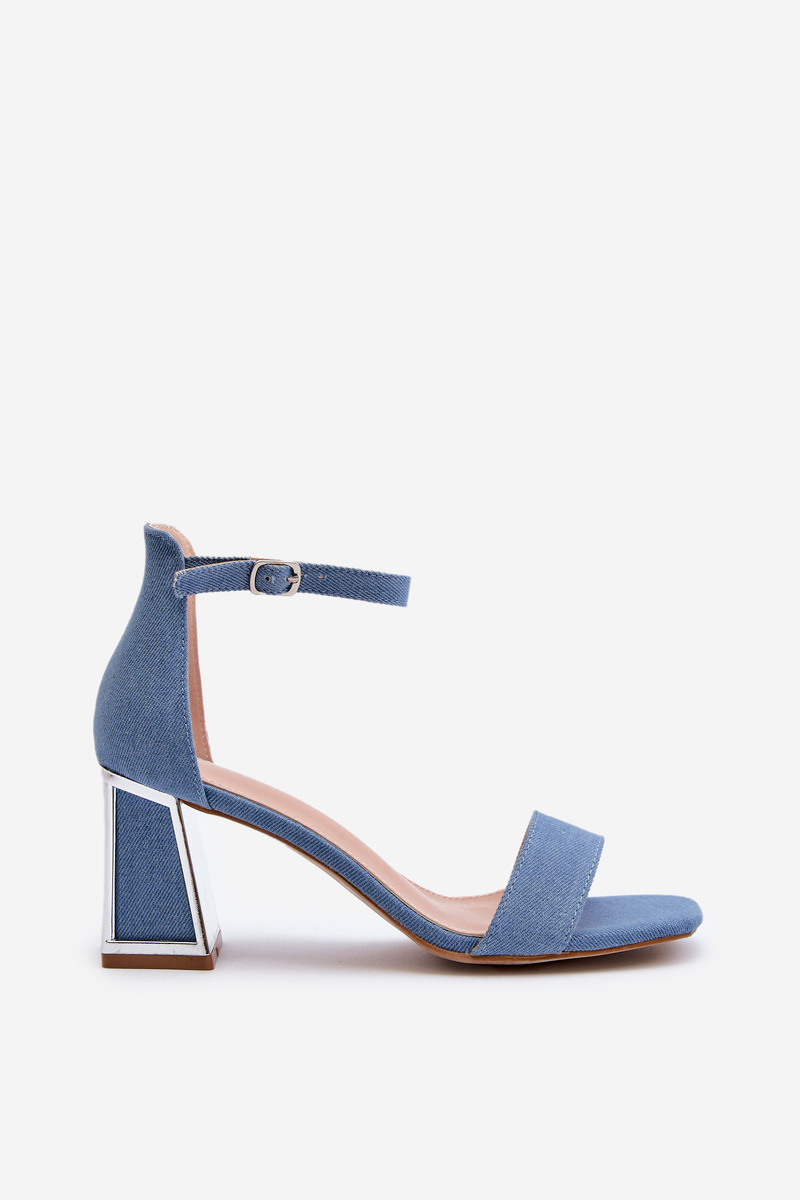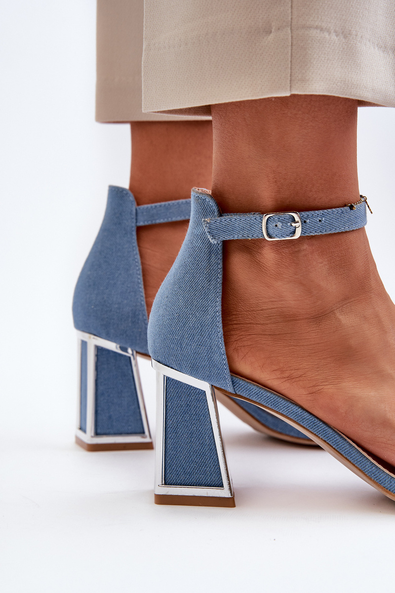 Jeansowe Sandały Obcas Słupek Niebieskie Pholia 0696