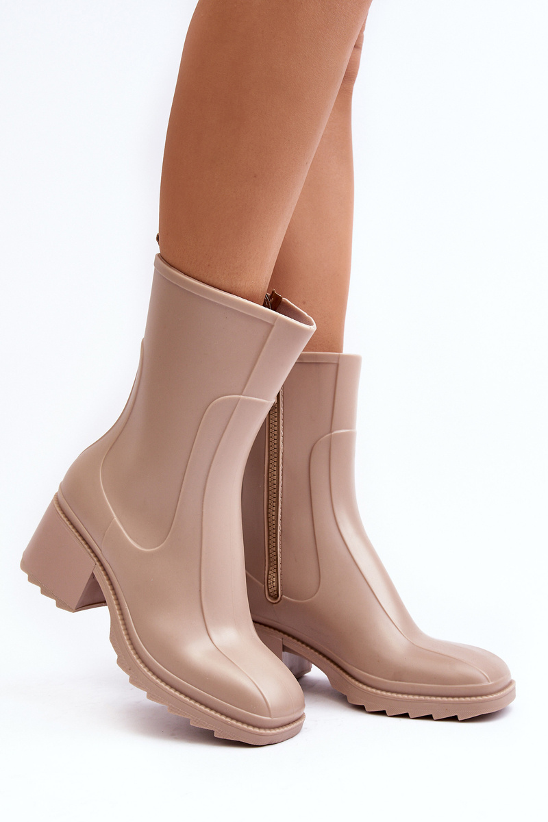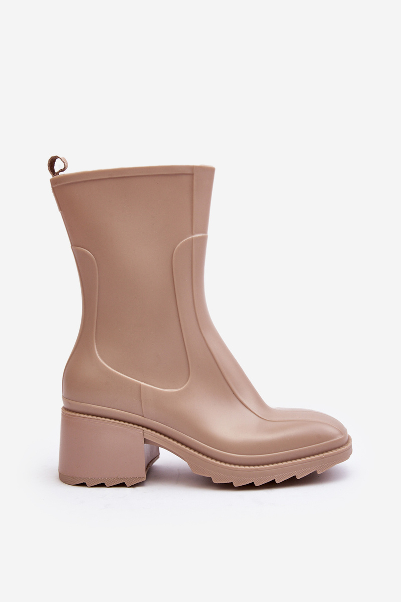Kalosze Botki Matowe Na Obcasie Damskie Beżowe Bertaida 9003-188