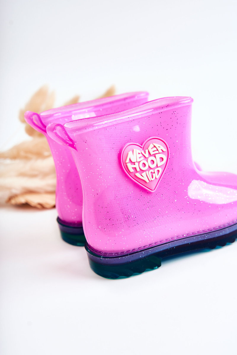 Kalosze Dziecięce Gumowe Brokatowe Fuksja Rain