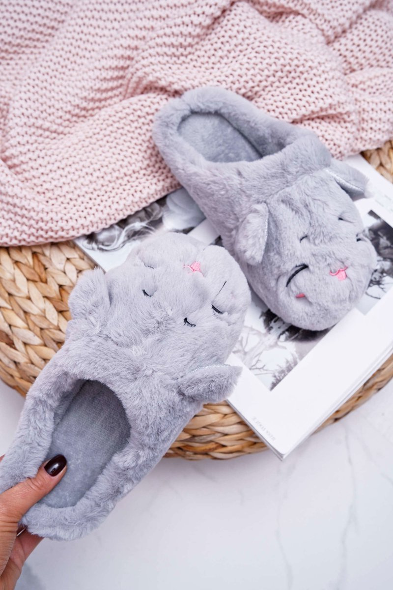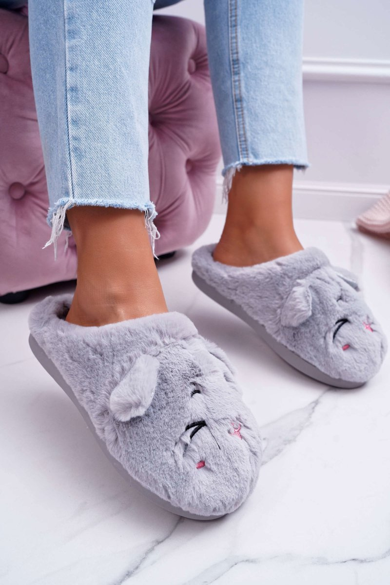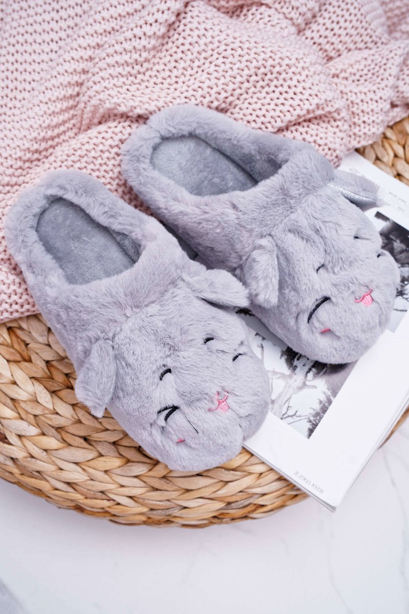 Kapcie Damskie Kotki z Uszami Szare Sleppyhead