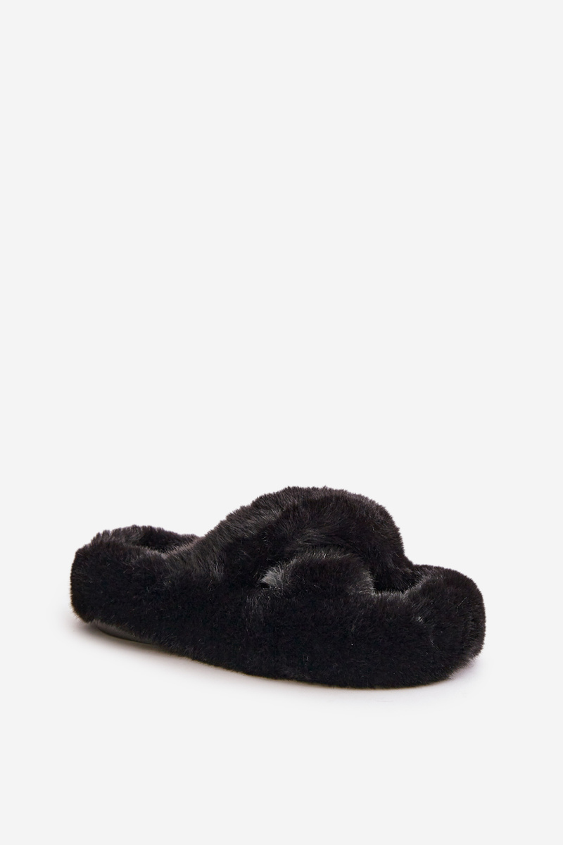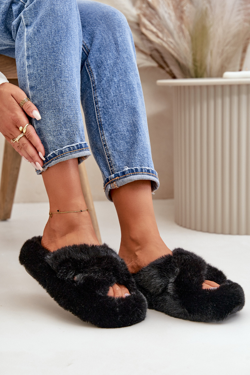 Kapcie Damskie Na Grubej Podeszwie Futrzane Czarne Lavitera