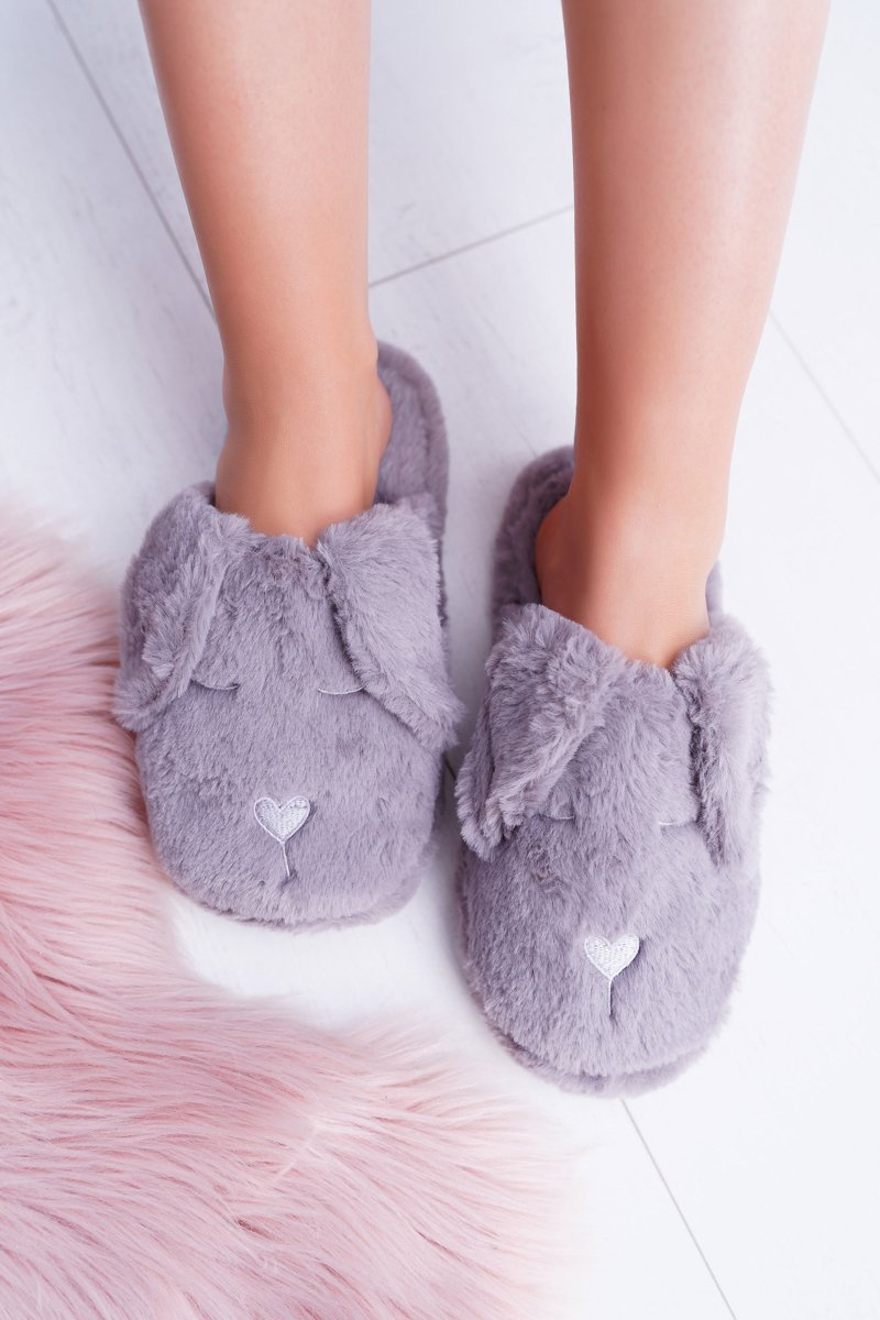Kapcie Damskie SOXO Puchate Pieski z Uszami Szare