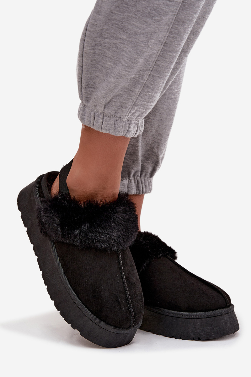 Kapcie Damskie Z Futerkiem Na Platformie Czarne Linaris
